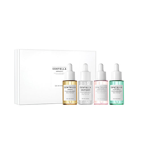 The SKIN1004 Madagascar Centella Ampoule Kit (Mini 4 Ampoules) contains 4 of the brand's best-selling ampoules to target your many different skin concerns!