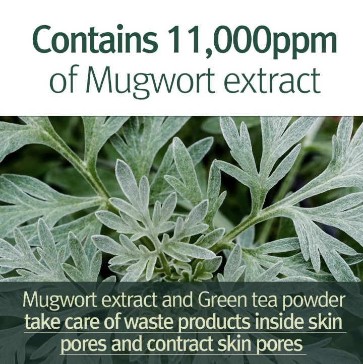 Its formula filled with Mugwort and Green Tea Powder gently clean every inch of skin pore, purifying the skin clean and fresh