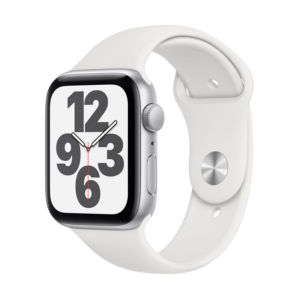 Apple Watch Series SE GPS 44mm Silver Aluminum Smartwatch - White Sport Band
