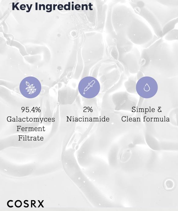 Key Ingredients: 95.4% of Galactomyces Ferment Filtrate ensures antioxidizing benefit with added brightening effect through 2%of Niacinamide.