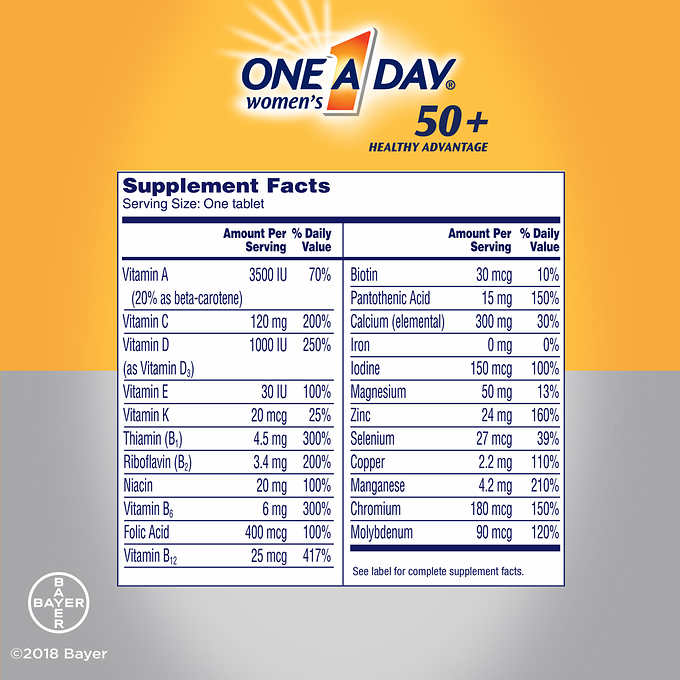 One A Day Women's 50+ supports:* healthy brain function, bone health, heart health2, eye health and immune health.