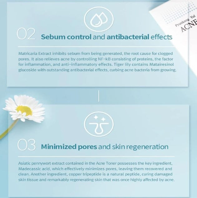 Pyunkang Yul Acne Line is specialized acne care line, which is inherited from Pyunkang Oriental medicine clinic's 40-year philosophy and knowhow.