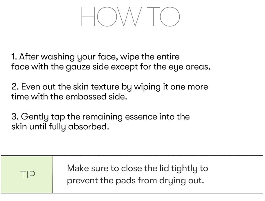 1. After cleansing, wipe the entire face with the gauze side except for the eye areas.