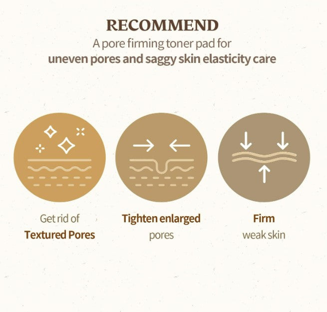 Triple Care: A pore firming toner pad that erase the bumpy uneven pores by tightening enlarged pores while fiming weak skin.