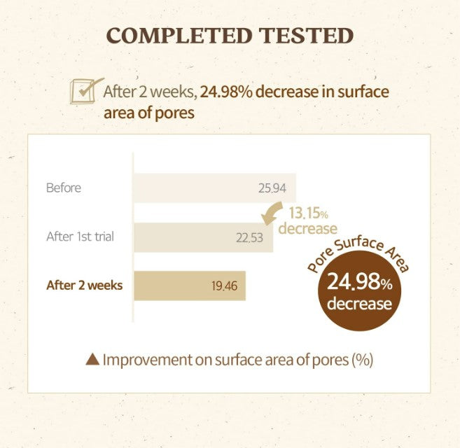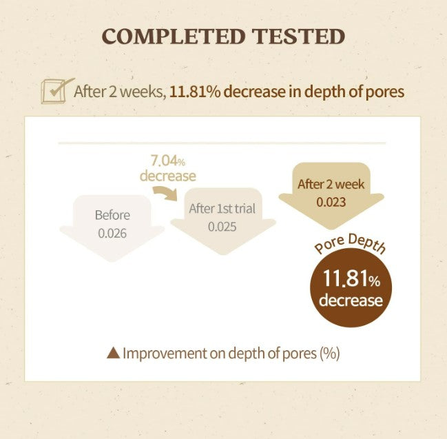 Clinical Test: Completed the test that 24.98% pore on surface has reduced and the pore depth has decreased 11.81% in 2weeks.