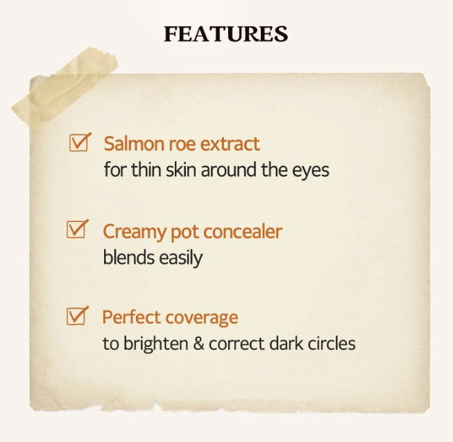 Contains Hokkaido Salmon Roe – Not only does this eye concealer for dark circles contain Norwegian Salmon, it also contains Hokkaido Roe extract and Retinol, which contains vitamin E, and Omega-3 Fatty Acids which combat skin aging, wrinkles, and fine lines.