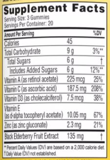 ZARBEE'S NATURALS NEW FORMULA, BLACK ELDERBERRY, 90 GUMMIES Exp. 01/22